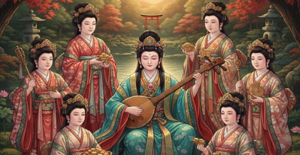 The story of Benten (also known as Benzaiten or Benzaiten), a Buddhist deity and celestial maiden, is well-known.